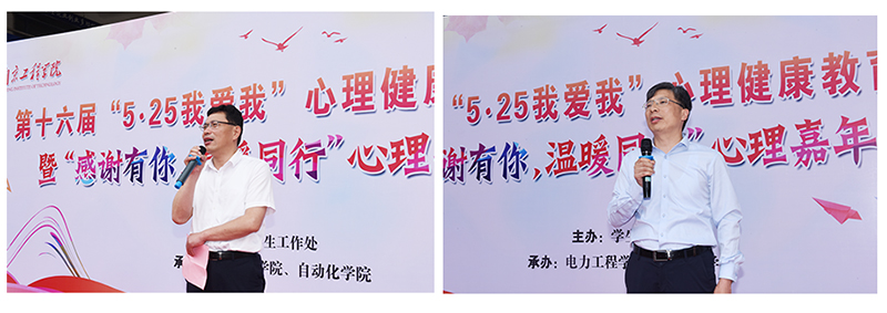 张仰飞副院长为本次心理健康教育活动月开幕致辞,他指出,学校历来非常重视大学生心理健康教育活动。今年的心理健康教育活动以“感谢有你,温暖同行”为主题,旨在将感恩教育、生命教育与心理健康教育相结合,在广大学生中树立“珍爱生命、心怀感恩、温暖同行”的理念,增进大学生自爱互爱、自助互助,促进学生心理健康素质提升。今年正值庆祝中国共产党成立100周年之际,在活动中要引导启发学生与时代共舞、与同伴偕行,将心理育人与思政育人紧密融合。希望通过本次活动,同学们能够牢牢树立关爱自我、关爱他人的心理健康意识,以健康的心理和坚强的意志去迎接未来的机遇与挑战,做一名勇立时代潮头、勇担时代重任的新时代青年。郑爱明主任代表江宁基地及江宁大学城23所高校对太阳集团心理健康教育活动月的启幕表示祝贺,他充分肯定太阳集团在大学生心理健康知识宣传与普及、心理摸排及危机干预、心理活动及服务咨询等方面作出的工作成效,以及为推动江宁大学城高校心理健康教育工作的发展做出的积极贡献。