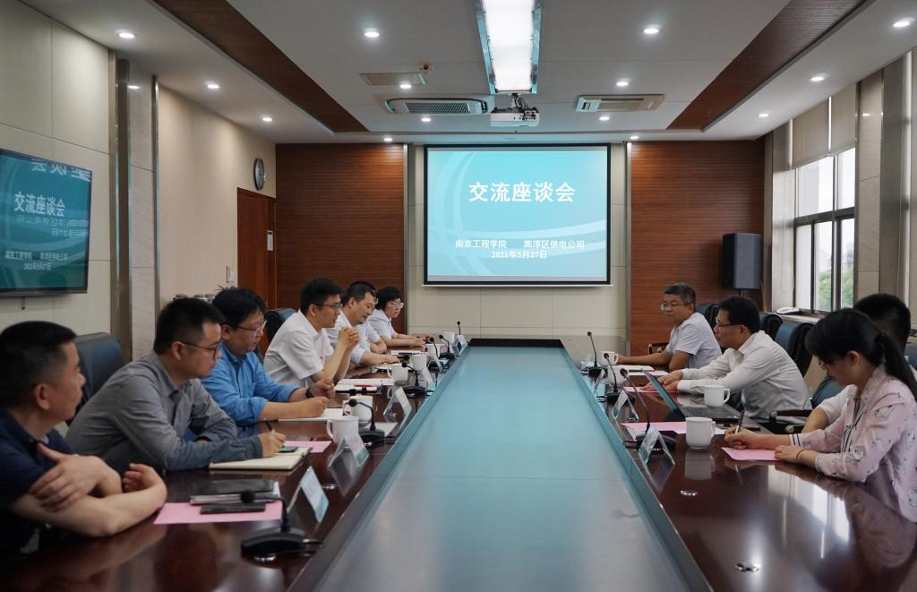 座谈会上,张仰飞副院长对高淳供电公司的热情接待表示诚挚的感谢,介绍了学校依托电力行业开展人才培养、校企合作工作等方面的情况。张仰飞副院长表示,双方可以在以下几个方面进行合作:一是结合党史学习教育,联合打造融合高淳红色新四军文化特色的党建赋能平台,推动文化赋能、发展赋能建设在校企双方合作中的落地;二是联合组建科研攻关柔性团队,结合“双碳”顶层规划,在电力大数据挖掘、配电自动化提升、综合能源系统建设方面进行专项课题攻关和突破;三是瞄准生产一线中存在的难点问题,形成一批应用型研究课题,发挥学院科研和技术集成优势,打造一批应用于电力一线的工程技术产品,树立地方应用品牌;四是依托高淳的电力电缆实践基地和电力工程学院智能变电站等实践资源,实现师生员工在工程技能和技术前沿专题方面的双向培训,提升师生员工素养。