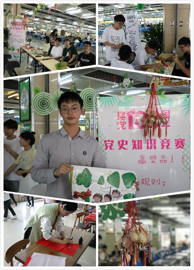 编织五彩绳、戴香包、挂鸭蛋……围绕端午节传统习俗,同学们亲手编织五彩绳、制作香包,互送祝福,表达年年好运的美好祝福。“党史知识竞猜”“爱国诗词大比拼”,让同学们在游戏中乐学党史。“着汉服、行汉礼”,通过民俗体验弘扬民族传统美德。“端午书法会”上,车辆182班杜泓轩同学还在现场创作了一首《七律·悼屈子》缅怀爱国诗人屈原,“戍国何须沙场醉,丹心一片向红旌”表达了当代青年对国家的一片赤子之心。