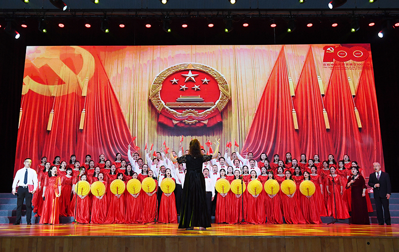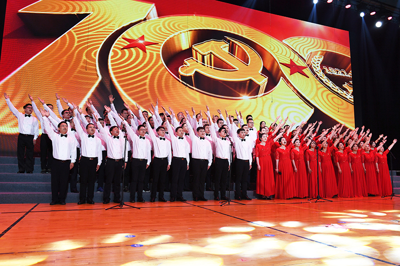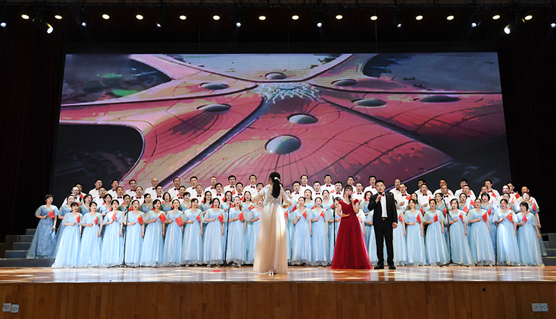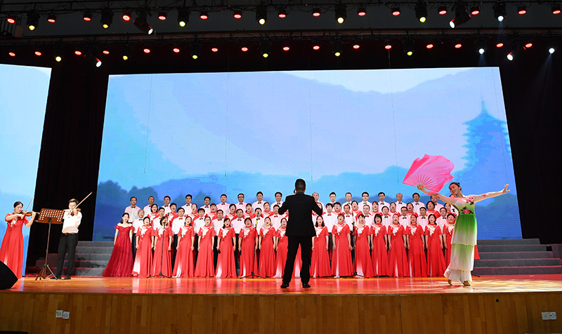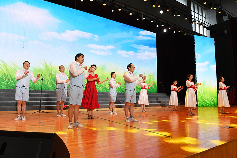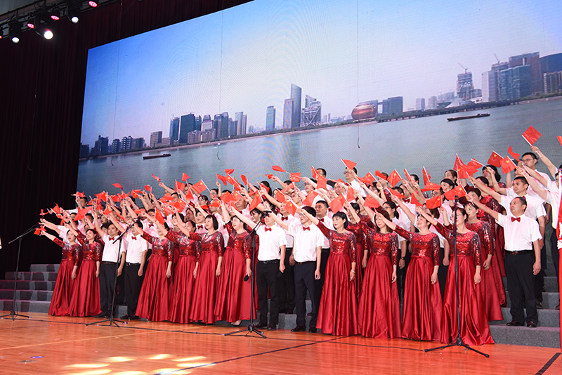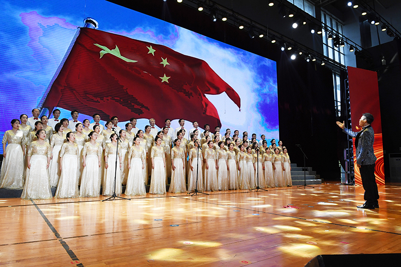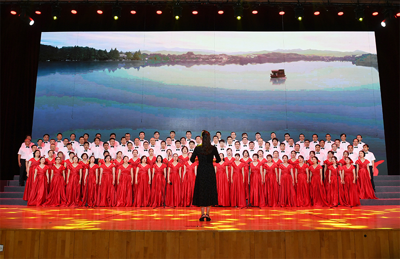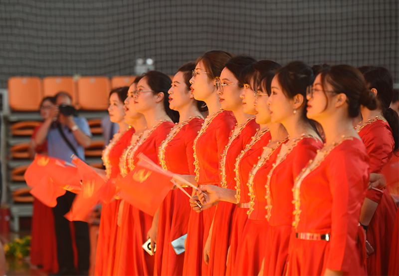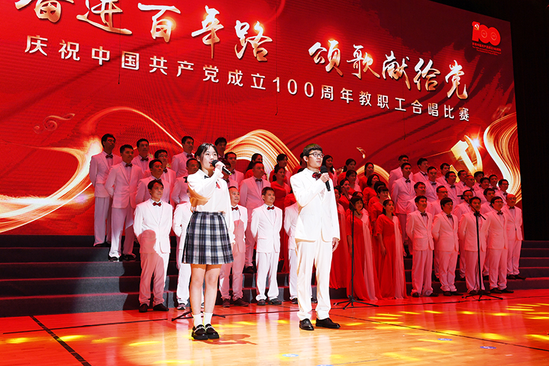 “没有共产党就没有新中国”“唱支山歌给党听,我把党来比母亲”“五星红旗迎风飘扬,胜利歌声多么响亮”“家是最小国,国是千万家”……6月28日下午,太阳集团体育馆内红旗招展、灯光璀璨,处处洋溢着激情与豪迈,“奋进百年路 颂歌献给党”教职工合唱大赛在这里举行。全校24支队伍依次登场,用一首首节奏鲜明、耳熟能详的经典,讴歌百年来中国共产党为人民谋幸福、为民族谋复兴的丰功伟绩,表达出全体教职工永远跟党走的坚定信念。