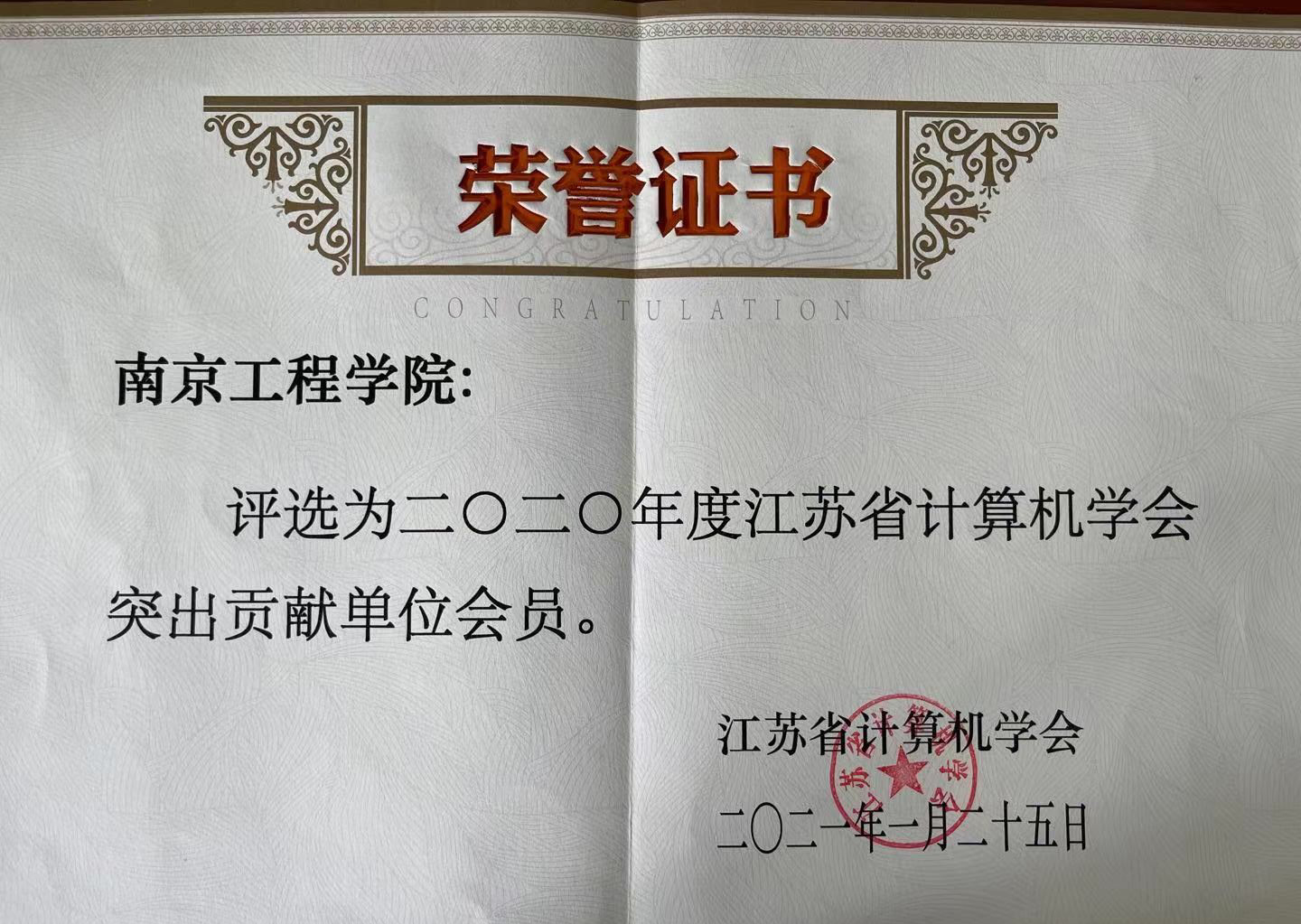 太阳集团被评选为“2020年度江苏省计算机学会突出贡献单位会员”