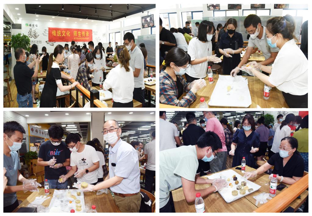 “饼儿圆与月儿如,更兆嘉祥食有余”。食堂事先为大家准备了豆沙、五仁、蛋黄、凤梨、莲蓉五种馅料,以及刻有“学以致用”校训的模具。在面点师的指导下,师生们分工协作,有的压皮,有的裹馅,有的压模……大家一边制作月饼,一边唠着家常;不少学生是第一次包月饼,有把馅当成皮的,也有蛋黄月饼里只放蛋黄的……各种“意外”直让大家捧腹,欢声笑语之间,师生共同体验着别样的快乐与幸福,体验着中国传统文化与校园文化的对接与融合。