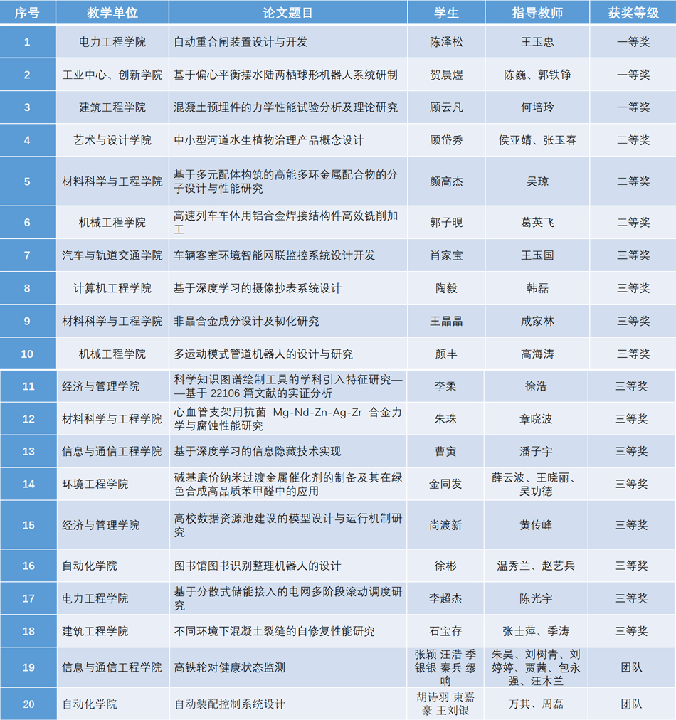 近日,江苏省教育厅对2020年江苏省普通高校本专科优秀毕业设计(论文)评选结果进行了公示,太阳集团报送的23项本科毕业设计(论文)共获20个奖项,其中获一等奖3项、二等奖3项、三等奖12项、优秀团队2个。一等奖数量及获奖总数均创历史新高。