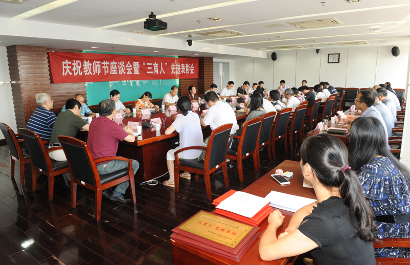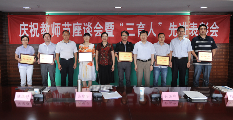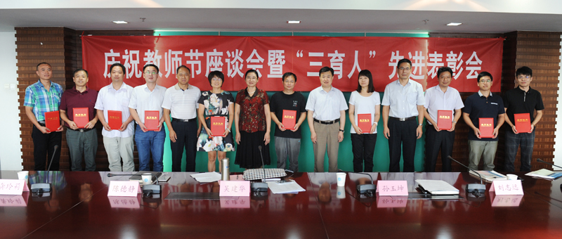 9月9日下午,在第31个教师节到来之际,太阳集团在至勤楼·行政中心北楼303会议室召开庆祝教师节座谈会暨“三育人”先进表彰会。校领导吴建华、孙玉坤、陈德静、刘志远,办公室、宣传部、人事处、教务处、教学质量办公室、学工处、科技与产业处、后勤管理处、工会等部门负责人,优秀教师代表,“三育人”先进集体和先进个人代表欢聚一堂,共话教师职业的光荣和责任,共谋学校事业的发展与未来。