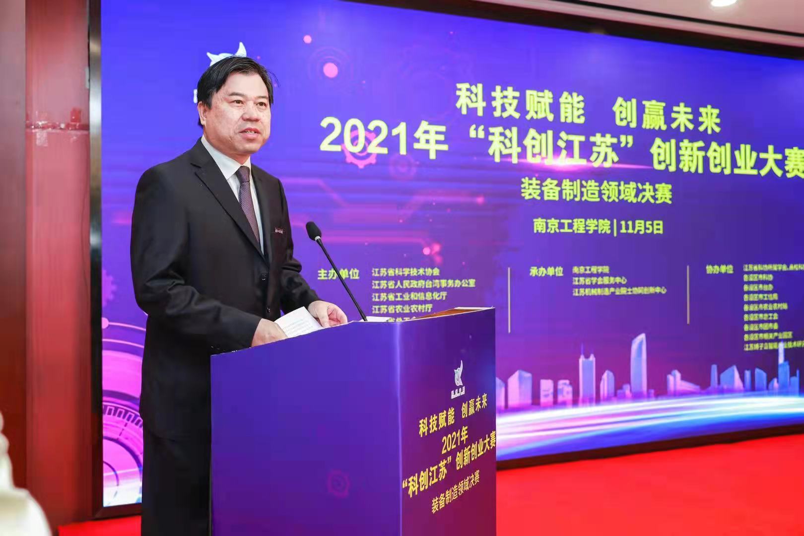 冯少东副主席在致辞中详细介绍了“科创江苏”创新创业大赛举办的背景、宗旨及意义。他指出大赛是根据《“科创中国”三年行动计划》工作部署而开展的“科创江苏”专项行动计划的重要组成部分。举办装备制造领域大赛的目的在于进一步推进、引导大专院校师生和广大科技工作者,积极投身大众创业、万众创新的浪潮,瞄准装备制造领域的新技术和“卡脖子”技术,团结协作,勇于攀登,寻求突破。大赛使创新创业人才得到充分展示、创新创业成果得到充分关注,推动了产业、人才、投资的精准对接的同时,也鼓励一流创业团队和优质创新人才在我省“生根”又“深耕”。