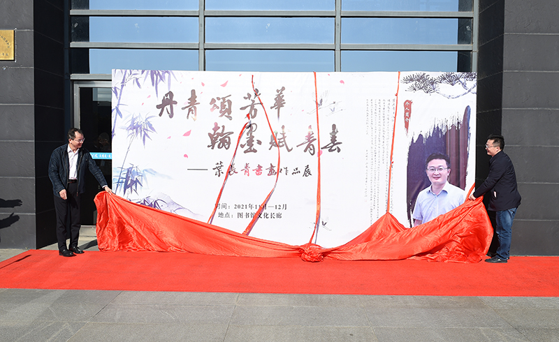 11月10日下午,“丹青颂芳华,翰墨赋青春”叶长青书画作品展在太阳集团文博苑·逸夫图书信息中心文化长廊开幕。校党委常委、副院长郑锋出席开幕式、为书画展揭幕并致辞。