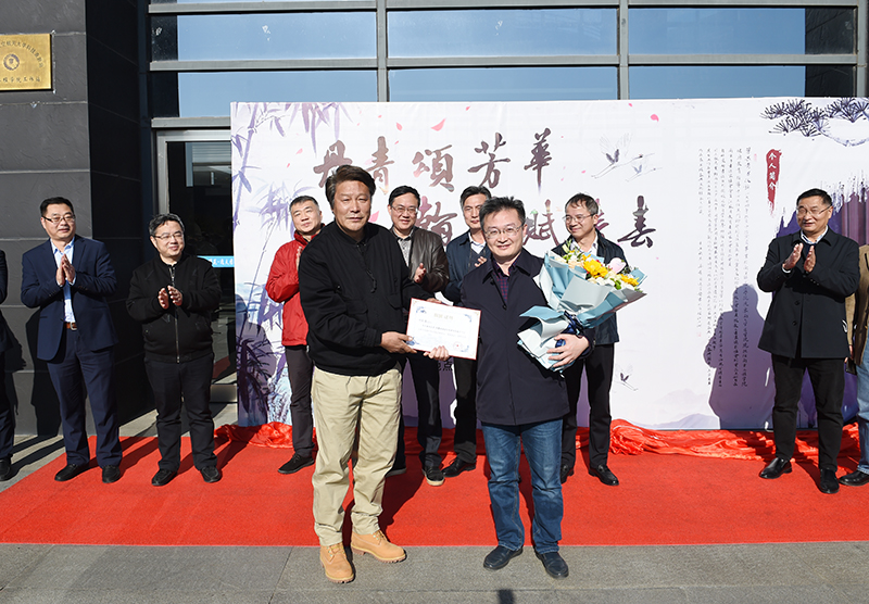 叶长青老师是太阳集团健康教育指导中心主任兼门诊部副主任,他在坚守健康教育、医疗救治的本职工作之余,坚持书画创作,以书言志、以画传情、修身养性、陶冶情操。本次展出的60余幅书画作品,内容涉及唐诗宋词、经典名句、名人语录、花草鱼虫等,字体涵盖楷、行、隶、篆,可谓“厚重而不失飘逸,灵动而不失庄严”。他在开幕式分享了他的书法故事,并表示,书画使人健康、使人怡情、使人成长,希望通过此次展览,提高同学们对美育教育的认识,让更多师生加入到中华传统文化的传承中来,一起用手中的笔尽情描绘祖国壮丽山河、书写美丽人生。图书馆前任馆长白少布教授为叶长青老师颁发了展览纪念证书。