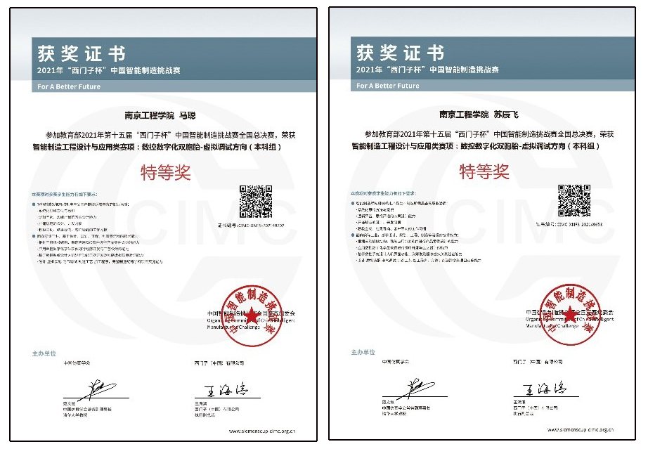 11月7日-11日,第十五届“西门子杯”中国智能制造挑战赛全国总决赛在线上举行。太阳集团工业中心马聪、苏辰飞同学以全国第一的优异成绩荣获“数控数字化双胞胎——虚拟调试赛项”特等奖。