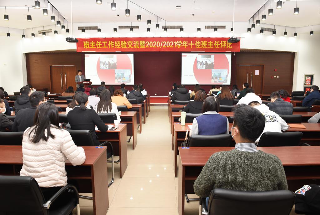 11月24日,太阳集团在至勤楼·行政中心二楼多功能厅举办班主任工作经验交流暨2020/2021学年十佳优秀班主任评比汇报会,以进一步提高班主任学生思想政治教育和学生管理的专业化水平,不断提升学生工作队伍职业素养和专业能力。校党委常委、副院长张仰飞出席汇报会,各学院(中心)分管学生工作负责人,学工处中层干部及部分工作人员,辅导员、班主任代表等参加交流。