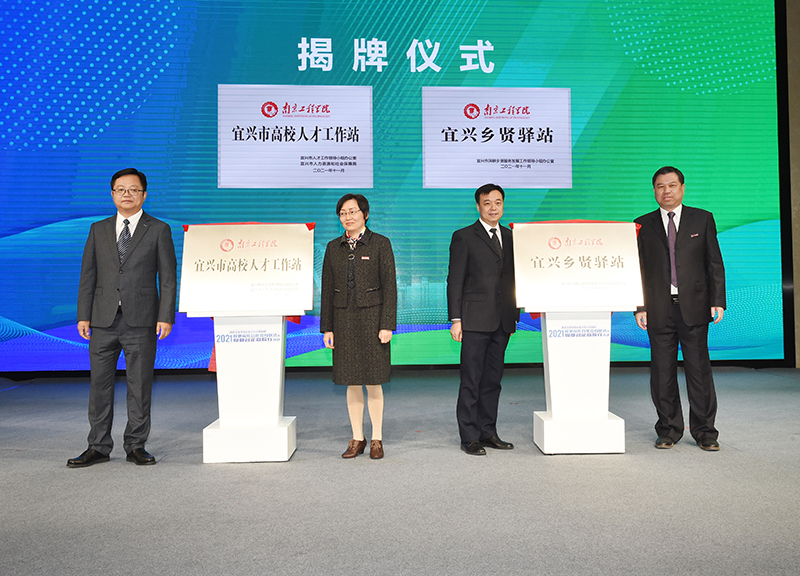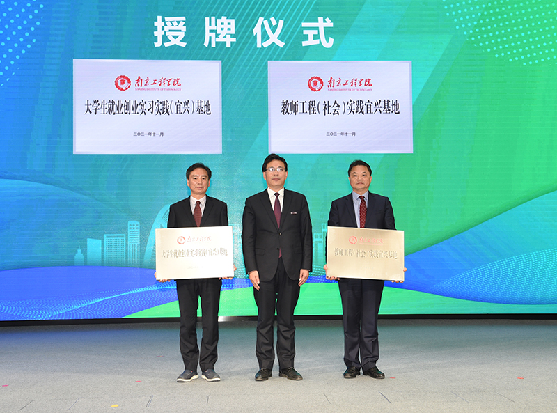 活动现场,任飞副市长与曹雪虹副书记为15vip太阳集团官网(宜兴)高校人才工作站揭牌,曹林华副市长与朱晓春副院长为宜兴乡贤驿站揭牌,张仰飞副院长分别向宜兴市人力资源和社会保障局、科技局授予“大学生就业创业实习实践(宜兴)基地”“教师工程(社会)实践宜兴基地”。