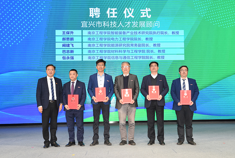 签约现场还举行双聘仪式,陈寿彬市长为太阳集团王保升、郝思鹏、阚建飞、巴志新、包永强颁发宜兴市科技人才发展顾问聘书,史国君书记为宜兴市邵黎军、嵇国军、毛子健、史小明、吴青松颁发15vip太阳集团官网大学生创新创业导师聘书。