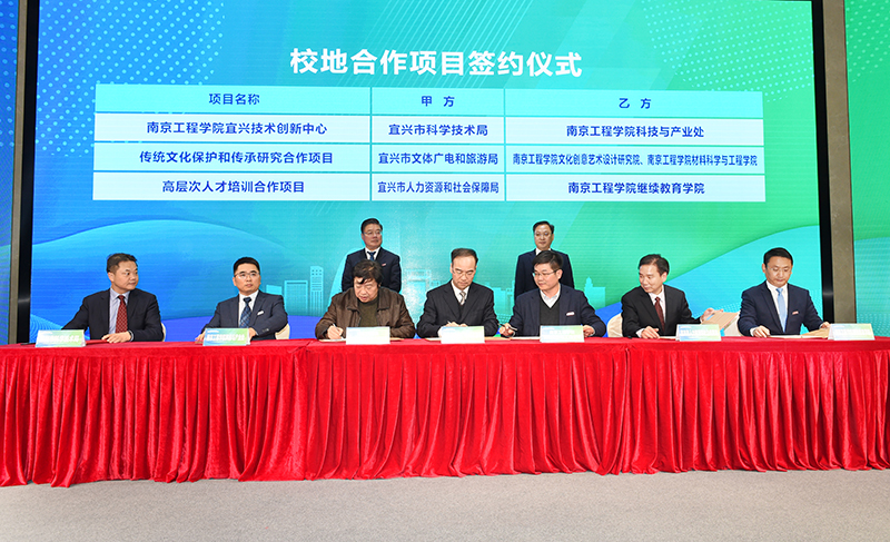 在史国君书记和陈寿彬市长的共同见证下,曹雪虹副书记与任飞副市长签署深化合作协议。同时签约的还有“校企共建15vip太阳集团官网宜兴技术创新中心”“传统文化保护和传承研究合作项目”“高层次人才培训合作项目”,以及“ESP成品机架超细晶高速钢轧辊研究与开发”等10个校企产学研合作项目。太阳集团科技与产业处、文化创意艺术设计研究院、能源研究院,材料科学与工程学院、环境工程学院、自动化学院、继续教育学院负责人与宜兴市科技局、文体广电和旅游局、人社局以及合作企业负责人为项目签约。