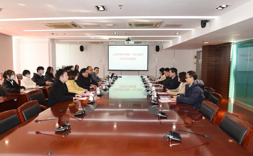 校团委负责人对照共青团、学生会组织改革评价自评表要求,从共青团的政治教育机制、实践教育机制、组织建设机制、保障支持机制,学生会组织全心全意服务同学、规范召开学生代表大会、从严治会等方面向检查组汇报了太阳集团共青团、学生会组织深化改革的具体情况。