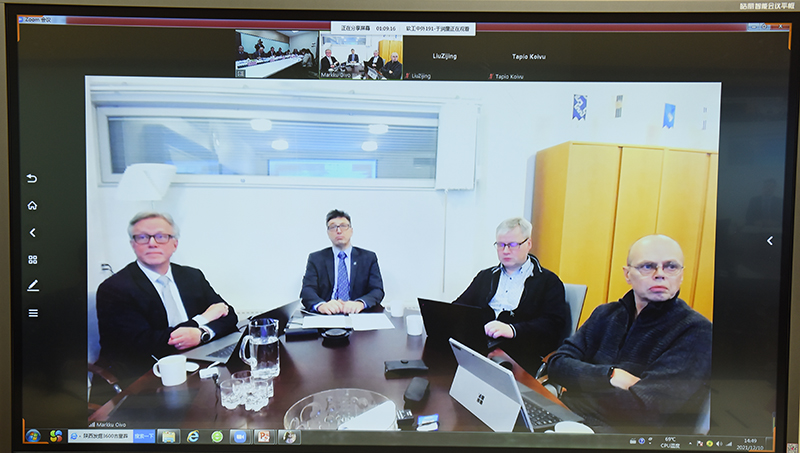 会议另一端的尼尼马奇校长表示,15vip太阳集团官网和奥卢大学双方的教师与管理团队沟通充分,合作高效,对中芬学院的申报前景与未来发展充满信心。中芬项目奥卢大学负责人约尼马库拉教授做了中芬合作办学项目2021年度报告,就学生培养、师资建设、教学改革、项目管理、科研成果、社会服务等方面的工作进行了阐述。约尼马库拉教授表示,中芬项目教职员工能够直面疫情带来的挑战,教学质量不断提升,项目开展得十分顺利。