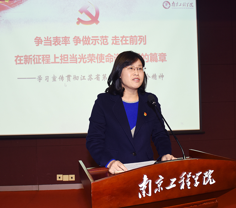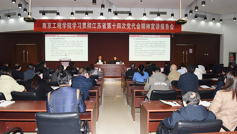 报告会上,史金飞院长以“争当表率 争做示范 走在前列 在新征程上担当光荣使命谱写新的篇章”为题,从江苏省历次党代会主题谈起,回顾了习近平总书记三次亲临江苏视察并对江苏发展提出明确指示要求和谆谆嘱托,简要介绍了江苏省第十四次党代会的基本情况,对大会主题、“争当表率 争做示范 走在前列”三大光荣使命、六个显著提升目标任务、九个方面的重点工作举措、新时代党的建设新的伟大工程等五个方面作了深刻阐释和系统解读,并结合学校实际对学习贯彻省第十四次党代会精神作了重要部署。报告主题鲜明、内涵丰富、论述透彻,对全校师生深刻理解省第十四次党代会精神,推进特色鲜明的一流应用型工程大学建设,谱写学校事业高质量发展新篇章,具有重要指导意义,也为全校上下践行“争当表率 争做示范 走在前列”三大光荣使命指明了前进方向,注入了强大动力。