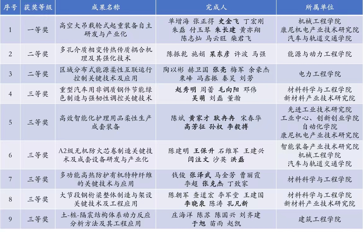 杲东彦教授参与完成的“多孔介质相变传热传质耦合机理及其强化技术”、张亮教授参与完成的“区域分布式能源柔性互联运行控制关键技术及应用”荣获二等奖。赵秀明教授主持完成的“重型汽车用非调质钢件节能绿色制造与强韧性调控关键技术”荣获三等奖。此外,太阳集团参与完成的5个项目荣获三等奖。