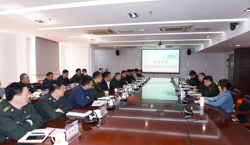 金农斌大校一行在党委书记史国君,党委常委、副院长张仰飞的陪同下,参观了学校人武部,实地观摩了一体化国防教育宣传阵地。随后,调研组一行在至勤楼·行政中心北303会议室进行座谈,座谈会由江苏省军区动员局局长韩涛主持。