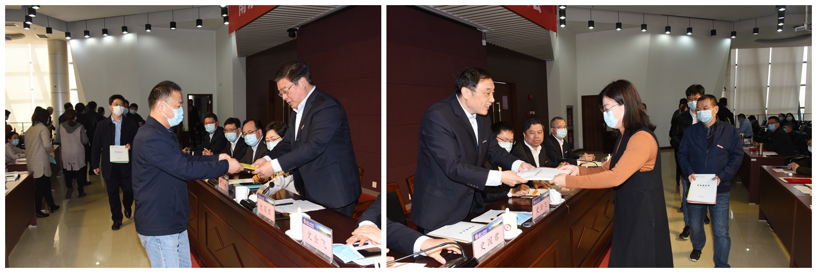 会上公布了2021年度目标考核结果,对年度目标考核优秀单位进行了表彰;对学校疫情防控工作作了专题部署;机关职能部门、直属单位负责人向史国君书记,教学单位、科研单位负责人向史金飞院长分别递交了2022年度目标考核责任书、意识形态工作责任书、校园安全与治安综合治理责任书、消防安全责任书、网络安全责任书。