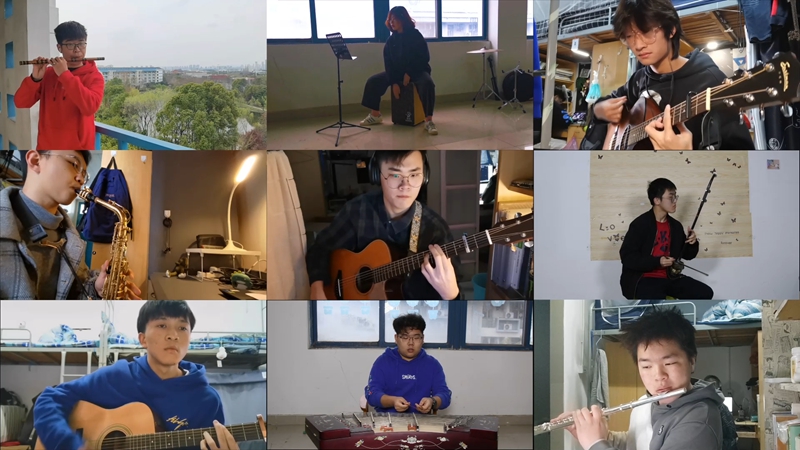 器乐团团长许季何同学利用课余时间将作品的改编工作完成。“与以往线下可以直接听到声音、能够及时更正与沟通不同,这次编排对音准、节奏及各种技术上的要求都提高了不少。”面对“云合奏”最难解决的录音问题,许季何做足了准备,“我们提前设计好录音方案,预判录音时可能会出现的问题,希望能在宿舍有限的录音条件下呈现出更好的声音质量。”