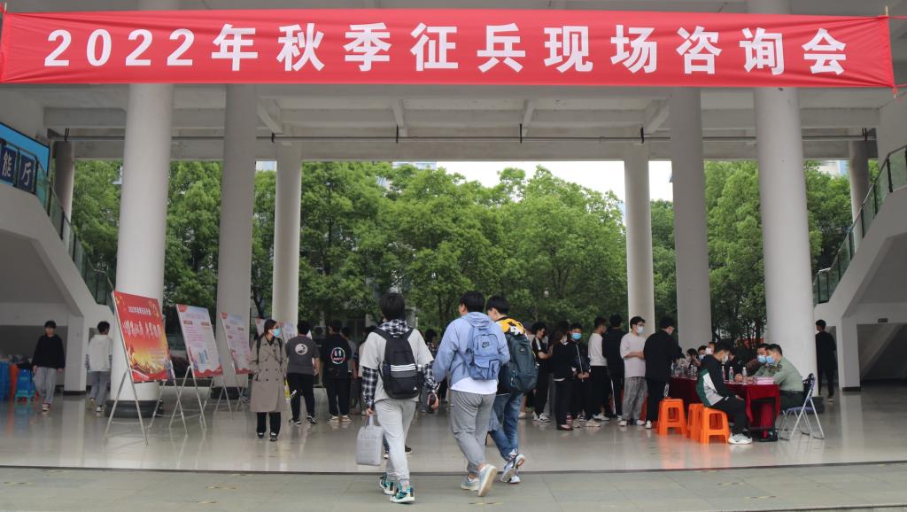 5月11日下午,学校在至馨苑•综合服务楼广场举办2022年秋季毕业生征兵现场咨询会。江宁区人武部、学校人武部相关负责人以及各学院(中心)征兵工作人员参加咨询会,开展毕业生入伍宣传动员和政策咨询活动。校园内主干道与宿舍楼宇间,悬挂了30余条征兵宣传横幅,鼓励大学生毕业后积极投身强军梦,全面贯彻新时代党的强军思想,踊跃报名应征接受祖国挑选。