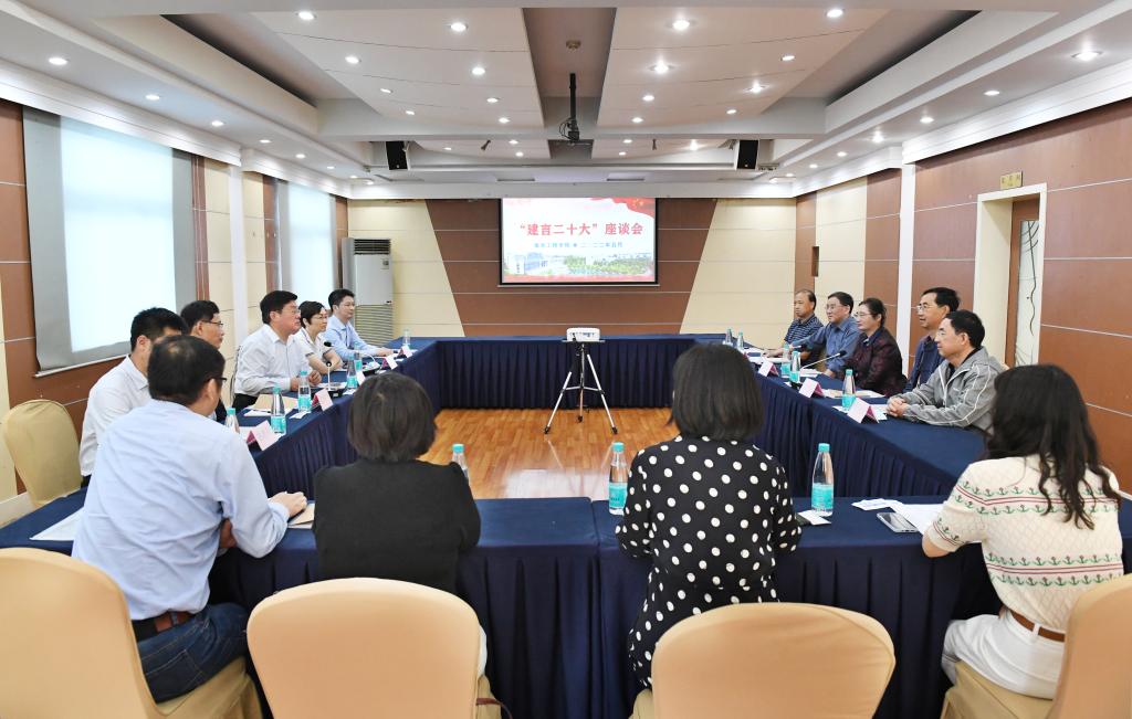 “退休后,我们的入党初心不变,积极建言二十大,是每个老共产党员的职责所在。我们身退心不退,继续为学校高质量发展多提宝贵意见和建议,我们相信‘扩硕申博 建设一流应用型工程大学’的目标一定能早日实现!”“我们这些老同志要发挥政治优势、经验优势、威望优势,协助做好统一思想、稳定人心的工作,为党的二十大胜利召开营造良好氛围,期望党的二十大开成一个团结的大会、胜利的大会、鼓劲的大会,带领全国人民奋勇前进的大会。”吴建华、刘泽南、王书城、吴中江、陈德静等离退休老干部对党的二十大胜利召开热切期盼、满怀喜悦、寄予厚望,他们结合个人生活、工作经历、亲身感受,围绕中央提出的八个方面内容,从党的建设、经济发展、社会民生、文化教育、生态环保、法制宣传、执政能力建设等方面踊跃发言,为学校、城市、国家发展建诤言、献良策。大家纷纷表示,要原原本本、全面系统地学习习近平新时代中国特色社会主义思想和党的十九届六中全会精神,深刻认识党百年奋斗的光辉历程和辉煌成就,深刻认识党百年奋斗的初心使命,深刻认识“两个确立”的决定性意义,弘扬党的优良传统、赓续红色血脉,进一步强化“四个意识”,坚定“四个自信”、坚决做到“两个维护”,为实现第二个百年奋斗目标、实现中华民族伟大复兴的中国梦继续发光发热、贡献力量,用实际行动喜迎党的二十大胜利召开。