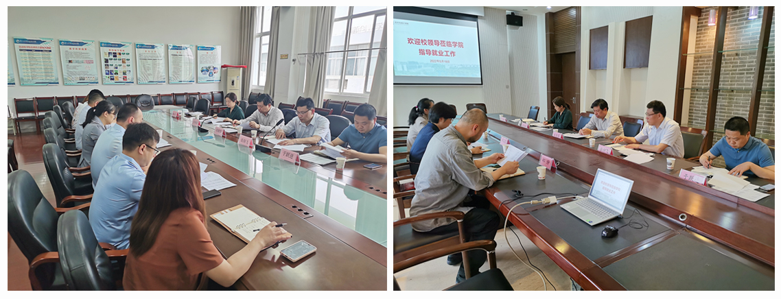 在调研经济与管理学院、计算机工程学院时,杨征宇副院长就学院如何进一步强化就业工作提出两点意见。一是坚持落实立德树人根本任务,在对学生的就业指导和帮扶中,加强思想政治教育工作,注重思想引领,加强毕业生职业观、就业观教育,引导学生正确认识严峻的就业形势,扎实推进毕业生就业工作向前发展。二是加强班主任工作制度建设,完善毕业班班主任遴选和激励机制,通过学院考核办法、制度优化等方式进一步提高毕业班班主任的主动意识和工作能力,增强班级就业工作实效。在与自动化学院、艺术与设计学院的座谈会上,朱晓春副院长指出二级学院在学科建设、人才培养等方面要结合自身专业特点,根据就业形势和方向及时调整建设目标,抓好学科建设,注重人才培养质量,只有定位准确、特色鲜明,才能具备就业绝对优势。在走访环境工程学院时,赵立法书记表示,要积极拓展就业资源、主动引入企业资源,建设高水平实践实习基地,努力缓解毕业生就业结构性难题,要加强对未就业学生的就业指导,学院上下要抓住毕业前求职的关键期、冲刺期,抓紧行动、加快推进,引导毕业生积极求职、尽早就业,全力确保毕业生就业大局稳定。