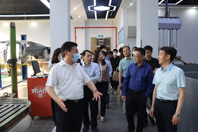随后,史书记与同学们来到该校汽车车身技术培训中心,该中心以整车技术培训为目标,先后与长安福特、一汽丰田、标致雪铁龙等国内外一线汽车厂商合作。史书记引导同学们从汽车构架、机器构造、汽车钣喷等方面全面了解汽车技术,帮助班级学生宏观把握行业状况,全面认识专业。