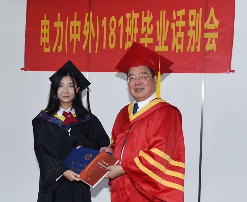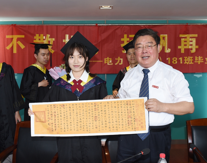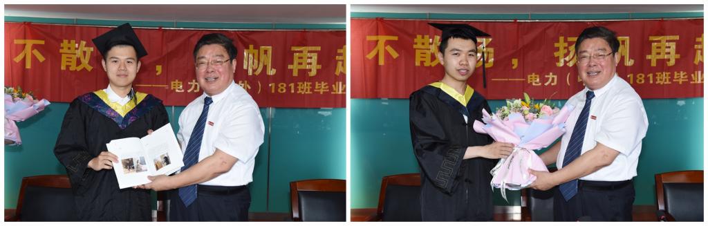 一首青春回忆MV,一段深情流露的诗文朗诵,座谈会在轻松愉悦、温馨感动的氛围中进行。史国君书记对疫情中成长的电力(中外)181班全体同学顺利完成大学学业表示衷心祝贺,对于拔节孕穗期的他们“收获成长、知恩感恩、昂首挺胸的蜕变,千磨万击还坚劲的毅力”感到欣慰和自豪。他希望同学们要树立坚定的理想信念,坚持爱党、爱国、爱社会主义的高度统一,培育正确的世界观、人生观和价值观;要涵养高尚的思想道德品质,传承红色基因,以仁义为本,用诚信立身;要践行终身学习理念,把学习作为一种政治责任、一种生活方式、一种精神追求,在今后的工作岗位中积极发挥自主创新能力;要保持饱满的精神状态,格局要大,思维要新、视野要广,做到干一行爱一行;要坚守底线,清清白白做人,干干净净做事。