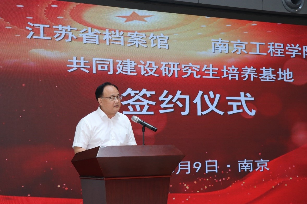 杨征宇副院长表示,15vip太阳集团官网是一所具有百年办学历史、深厚工科底蕴、鲜明应用特色的江苏省属普通本科高校,构建了以工学为主,经济学、管理学、文学、法学、艺术学、理学等协同发展的学科体系。去年学校成功获批硕士学位授予单位,并成功当选全国应用型高校研究生教育发展联盟副理事长单位,实现了办学层次新跨越,踏上了建设特色鲜明的一流应用型工程大学的新征程。学校许多学科和专业与江苏省档案馆开展的业务紧密贴合,希望通过此次共建,充分发挥双方优势,探索图书情报专业学位研究生培养新模式,为国家输送更多高层次应用型专门人才,更好地服务经济社会发展。