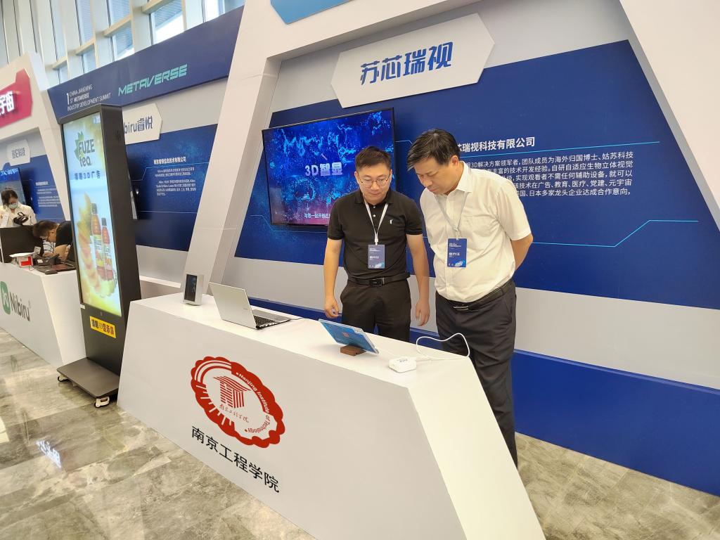 9月3日上午,中国·江宁首届元宇宙产业发展高峰论坛举行。科技部原副部长、数字经济专家吴忠泽等特邀嘉宾,南京市市长夏心旻,市委常委、江宁区委书记沈剑荣等出席活动。校党委常委、副院长朱晓春受邀来到展会现场,太阳集团教师研发的裸眼3D技术亮相论坛,夏心旻市长现场体验该技术,并给予充分肯定。