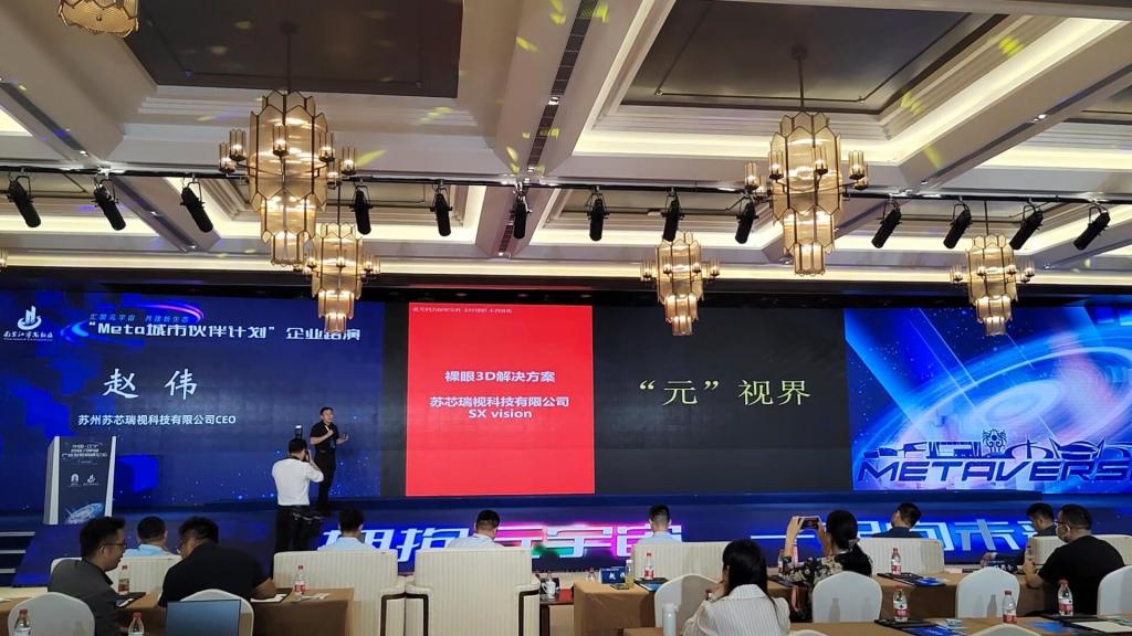 论坛上,来自太阳集团材料科学与工程学院、计算机工程学院、艺术与设计学院等青年骨干教师联合研发的裸眼3D技术现场发布。技术主要负责人、材料科学与工程学院教师赵伟分享了裸眼3D的技术特点、发展前景以及技术成果转化情况。“学校良好的软硬件设施和政策支持为我们这些科技创新型团队的发展壮大注入了‘强心剂’,我们不断加速科技成果转化步伐,努力为地方经济发展助力。”目前,该技术在影视、广告、教育、医疗、党建、元宇宙等领域存在广泛应用前景,已与国内及美国、日本多家龙头企业签订战略合作协议。作为此次大会展出的唯一元宇宙人机交互新型显示载体,此项技术得到了参会观众与媒体的高度认可,也引起了毅达资本、赛马资本、盛世投资等多家创投公司的关注。