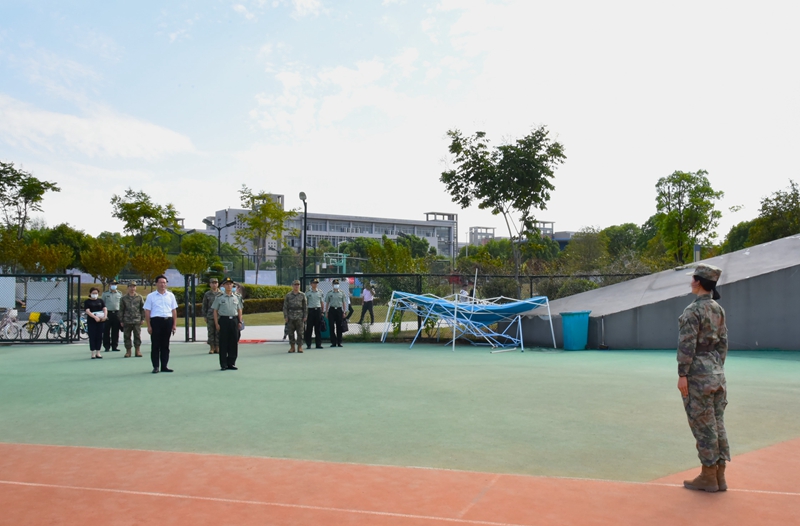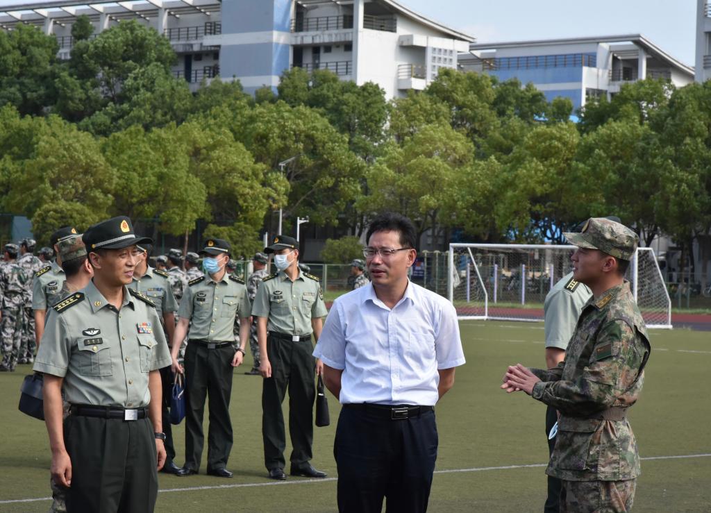9月5日,太阳集团党委常委、副院长张仰飞和中国人民解放军陆军工程大学常委、纪检处处长陈银军、通信工程学院副院长卢继荣来到2021级学生军训现场指导工作。检查组领导对学校军训工作给予了充分肯定,并向承训的教官、连队指导员以及跟训的辅导员老师表示感谢,对现场参训的学生予以鼓励。随行的还有陆军工程大学纪检处副处长张勇、四大队大队长刘钢、四大队政委曾宏辉等。