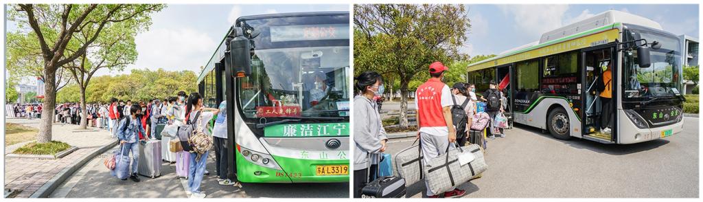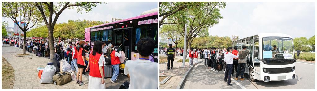 二号门、三号门、四号门处,一排排蓝色的遮阳棚,测体温区、APP扫码签到处、人工查验区等蓝底白字的标志十分醒目;因疫情防控需要,学校将核酸检测点搬到了校门口,免去了新生专门去做核酸检测的繁琐,也减少了聚集和流动;校园里,由学工队伍、保卫处、教务处、财务处、网络与信息中心、门诊部、后勤保障处等组成的工作人员服务热情周到;学校还提供了从地铁站到校门口的接驳车、从校门口到宿舍区的免费接送小公交,真正实现了校外校内交通的“无缝连接”。
