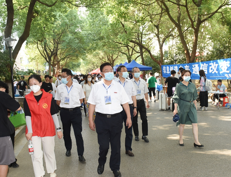 11日上午,校党委书记史国君,党委副书记、院长史金飞,党委常委、副院长张仰飞、郑锋,纪委书记赵立法来到校门口,在由2022级新生照片组成的“笑脸墙”前,他们与前来合影的家长和新同学交谈。“你们来自哪里?”“路上还顺利吗?”“请相信,我会为孩子们全力护航!”校领导们亲切的话语让不能进入学校的家长感到安心。“看到老师和同学们的关心和帮助,我们很感动,也很放心。希望我的孩子大学四年不浪费韶华,不辜负自己,成长为对社会有用的人。”来自河南信阳的一位家长说道。