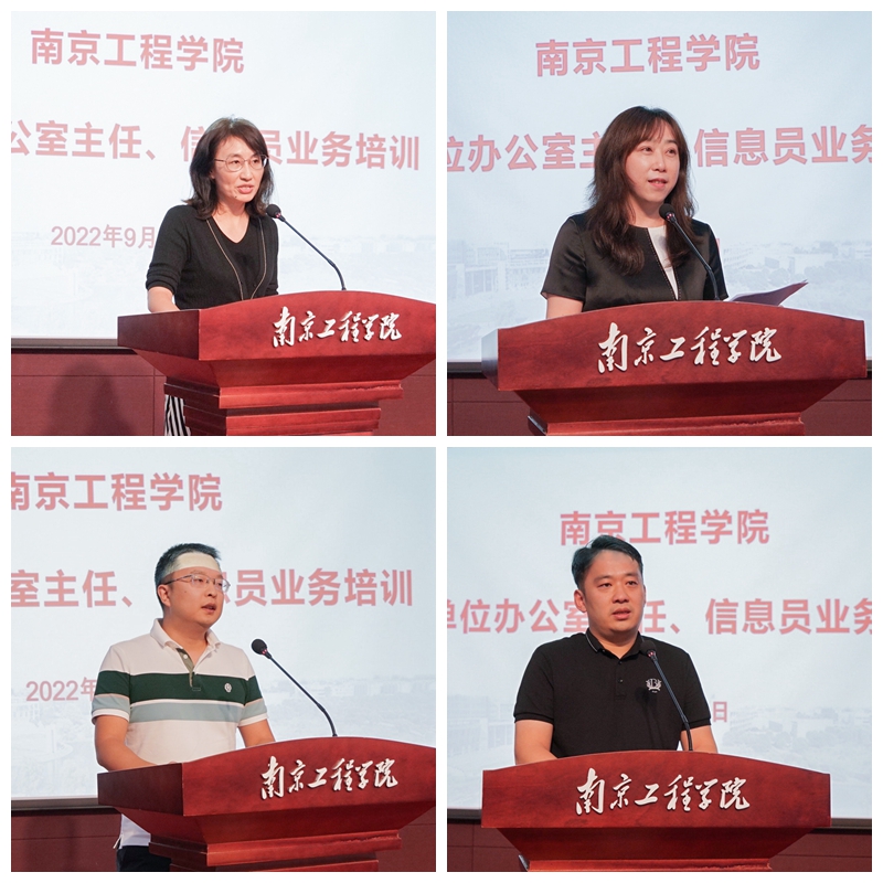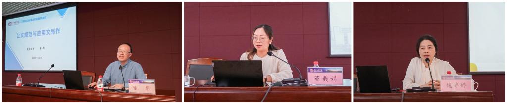 培训期间,党委办公室、校长办公室相关负责人就各自分管工作,分别以《成功当好总调度,高质服务南工程—办公室主任工作漫谈》、《公文规范与应用文写作》、《合同管理、办公自动化与法律事务》为题作了辅导报告。