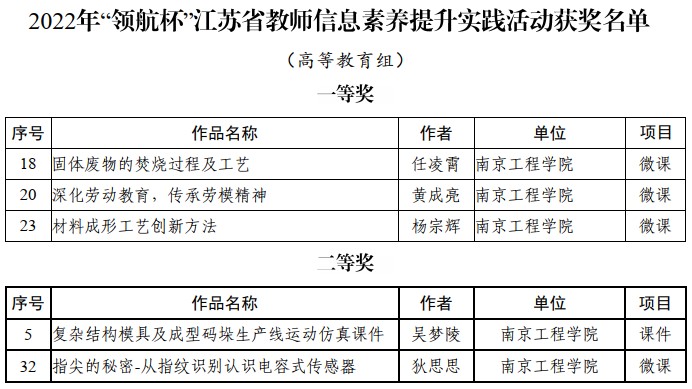 日前,省教育厅发布《关于公布2022年“领航杯”江苏省教师信息素养提升实践活动获奖名单的通知》(苏教办信函〔2022〕17号),太阳集团推荐的5件参赛作品全部获奖,其中材料科学与工程学院杨宗辉、环境工程学院任凌霄老师、马克思主义学院黄成亮等三位教师的微课作品荣获一等奖,材料科学与工程学院吴梦陵、自动化学院狄思思两位老师获二等奖。