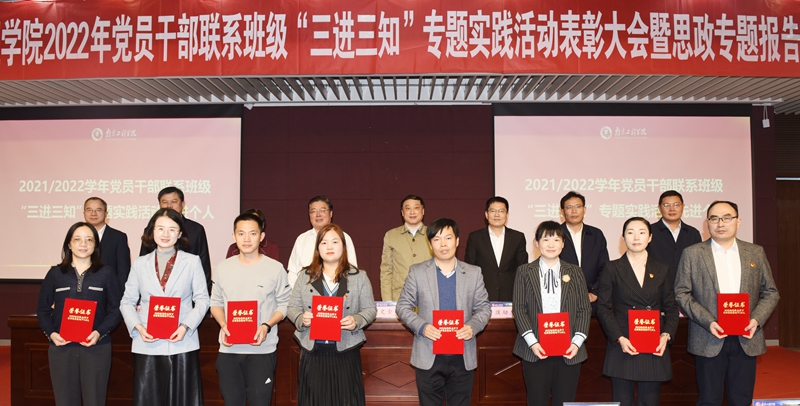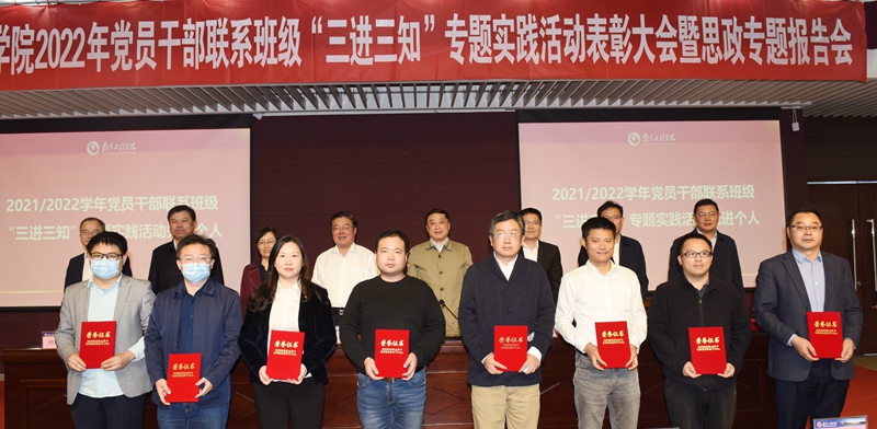 大会表彰了2021/2022学年党员干部联系班级“三进三知”云端思政教育系列活动优秀典型案例和先进个人,党委副书记、院长史金飞宣读了表彰决定。