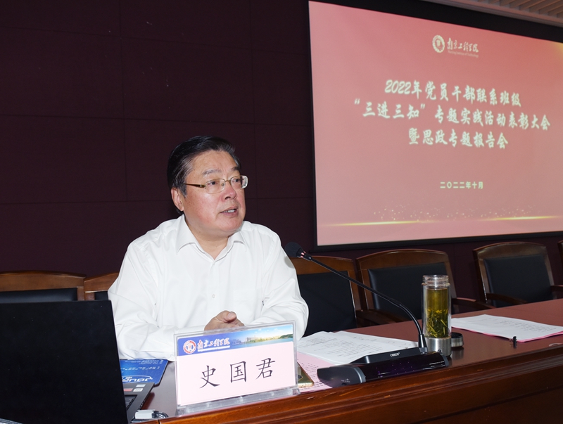 表彰会上,党委书记史国君全面回顾了学校践行“三全育人”理念,扎实推进“三进三知”专题实践活动以来取得的各项建设成果,分析形势、明确任务、部署工作。并围绕“大思政课”建设的内涵要义、方案解读和实践路径,就如何牢固树立“大思政课”理念,落实立德树人根本任务做专题思政报告。