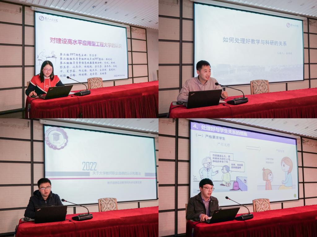 报告会前,史书记还认真听取了四组新教工代表围绕“如何建设高水平应用型工程大学、如何认识大学教师职业道德、如何处理好教学与科研关系、如何处理好教师与学生的关系”等话题所作的培训总结汇报,对他们勤于思考、善于学习的态度和认真实践的决心表示充分肯定,他勉励新教工们坚持为党育人、为国育才,携手面向未来,为人、为事、为学、为师,不负青春、不负韶华、不负时代、不负南工程。