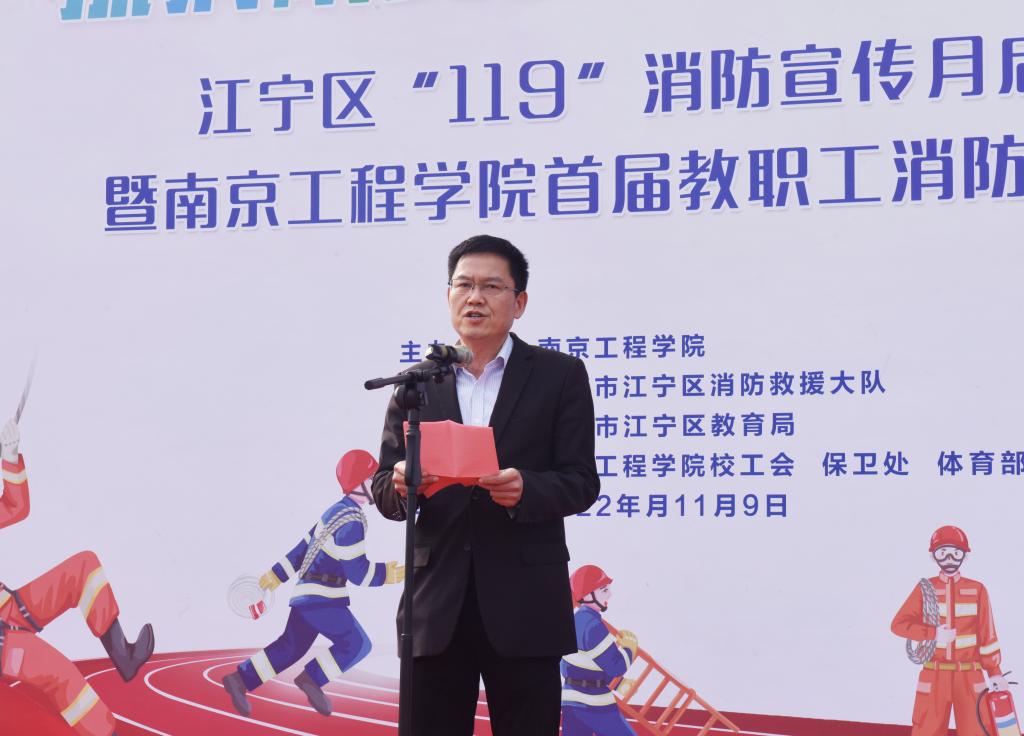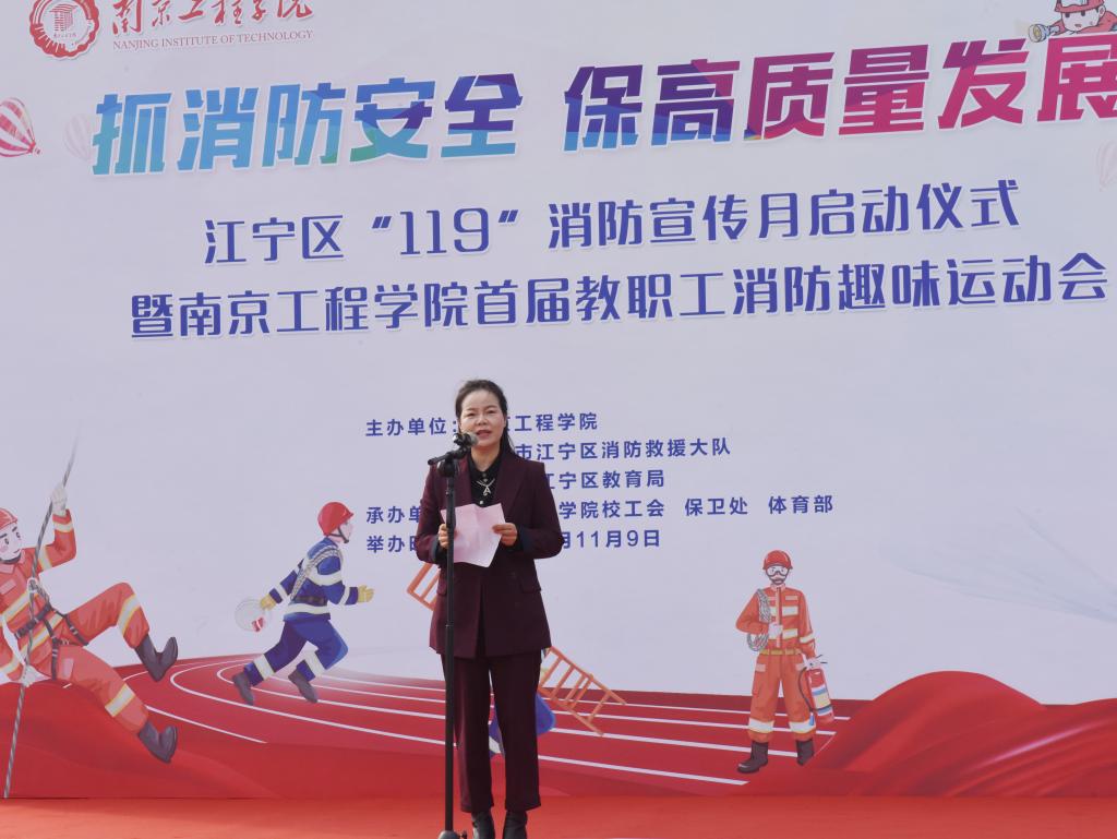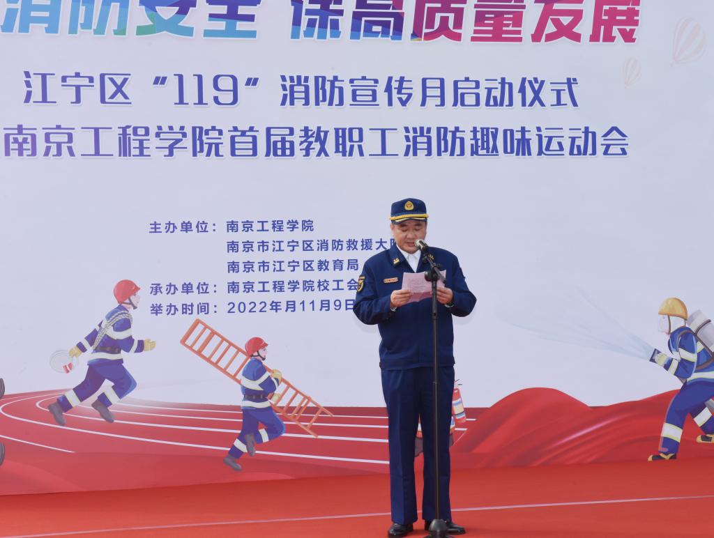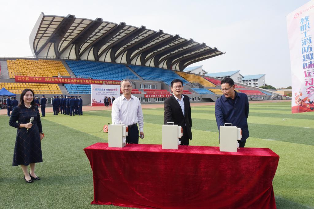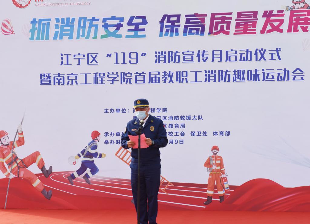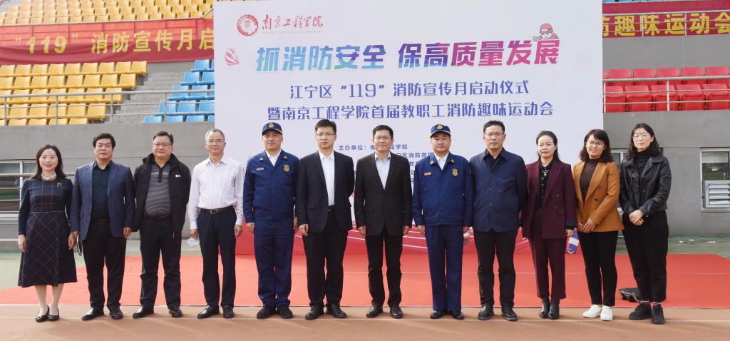 11月9日是第31个全国消防日,为不断推进高质量平安校园建设,提高教职工的消防安全意识,当天下午,江宁区“119”消防宣传月启动仪式暨15vip太阳集团官网首届教职工消防趣味运动会在学校体育公园举行。