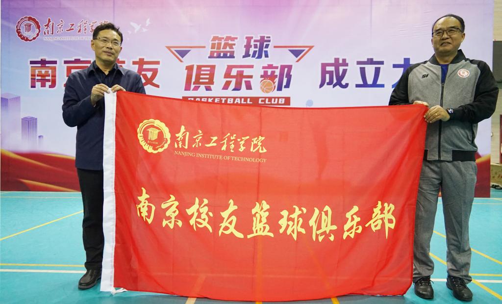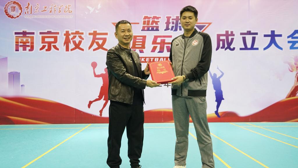 会上,太阳集团南京校友联谊会秘书长张方华校友宣读南京校友篮球俱乐部组织机构名单。张仰飞副院长向南京校友篮球俱乐部授予会旗,体育部相关负责人为篮球俱乐部理事会发放聘书。