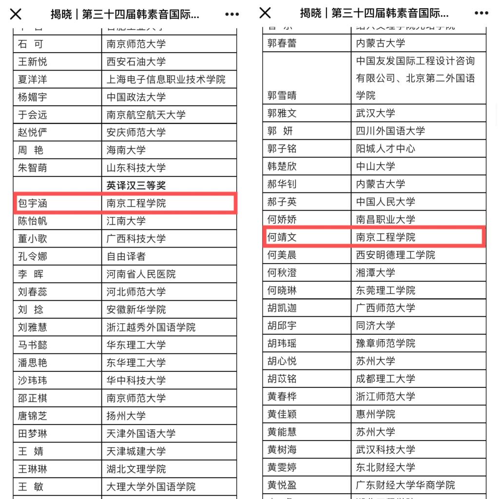 11月16日,第三十四届韩素音国际翻译大赛获奖名单公布,太阳集团外国语学院商务英语192班包宇涵和商务英语201班何靖文分别荣获英译汉组三等奖和优秀奖。
