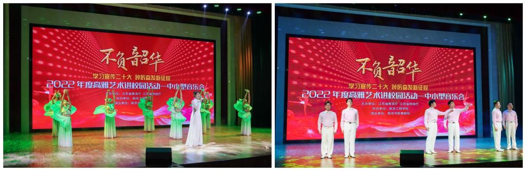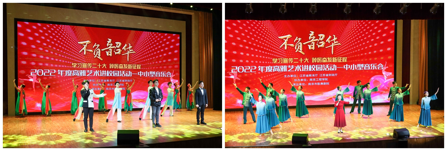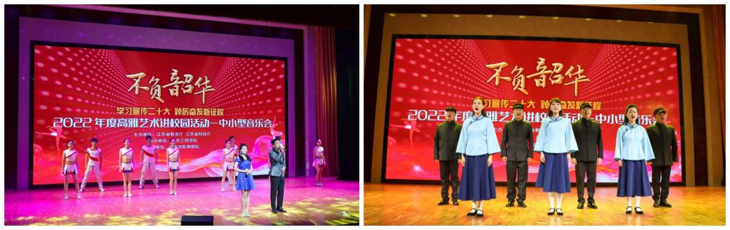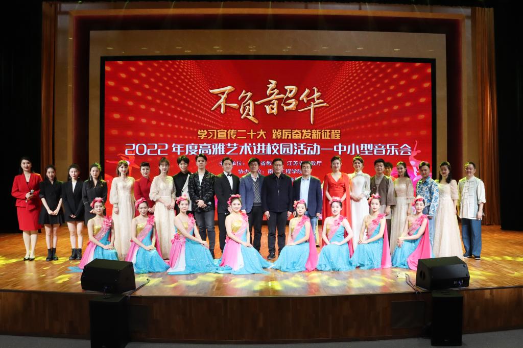 学习宣传二十大,踔厉奋发新征程。11月19日晚,由江苏省教育厅、财政厅主办的2022年高雅艺术进校园拓展项目——“不负韶华”主题音乐会在太阳集团科创园天印会议中心举行。校党委常委、副院长张仰飞,相关职能部门负责人、师生代表共同观看了演出。