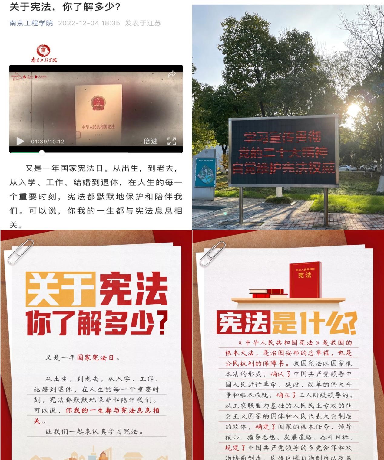 为纪念现行宪法公布施行四十周年,引导广大师生深入学习宣传贯彻习近平法治思想和党的二十大精神,在第九个国家宪法日来临之际,学校广泛动员、多措并举,在全体师生中开展以“知宪于心 守法于行”为主题的宪法宣传周系列活动。