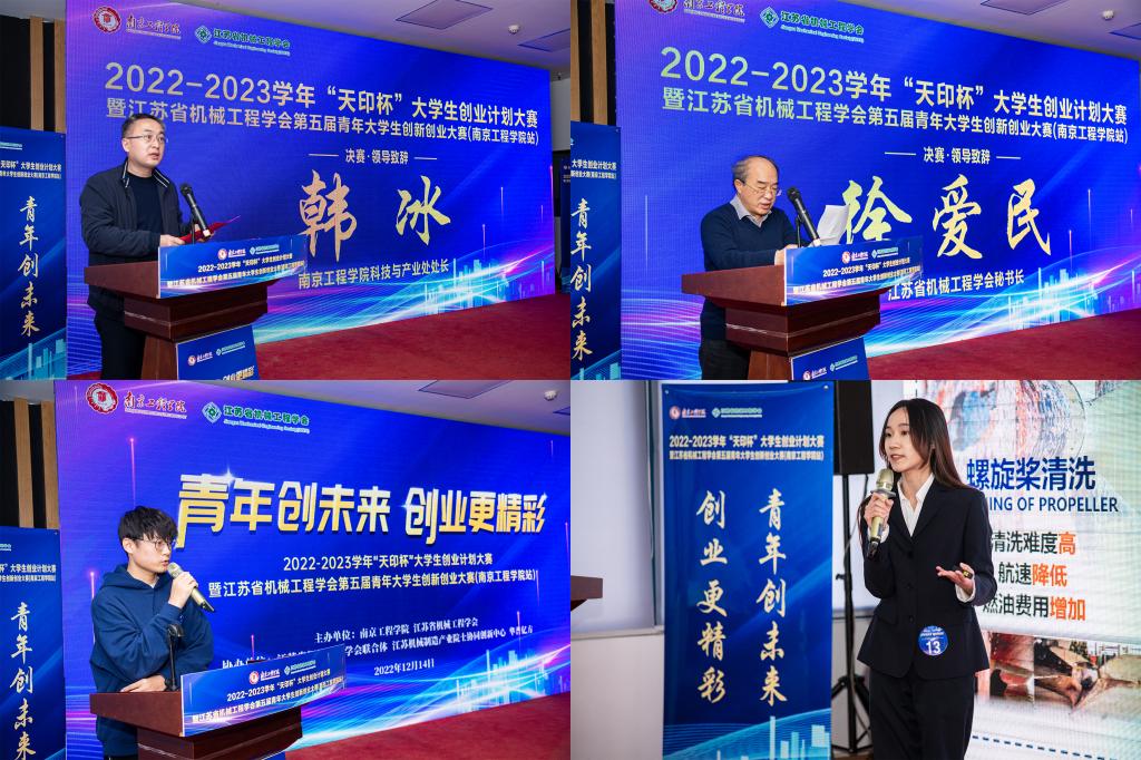 12月14日,太阳集团2022/2023学年“天印杯”大学生创业计划大赛暨江苏省机械工程学会第五届青年大学生创新创业大赛决赛在大学生创业园“天印梦工场”项目路演厅举行。江苏省机械工程学会秘书长徐爱民,特邀评委南京农业大学大学生就业创业导师、名誉教授史炜俊,太阳集团党办校办、科技与产业处、学生工作处、团委相关负责人,各参赛团队、各二级学院(中心)师生代表通过线下与线上相结合的方式共同参加了活动。