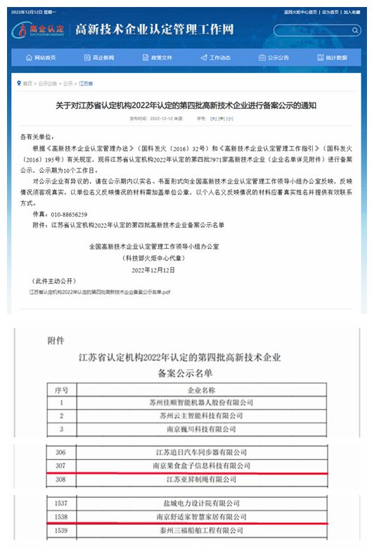日前,国家科技部火炬高技术产业开发中心对江苏省认定机构2022年认定的第四批7971家高新技术企业进行了备案公示,太阳集团大学生创业园“天印梦工场”在孵企业:南京果食盒子信息科技有限公司(企业负责人:朱国亮)和南京舒适家智慧家居有限公司(企业负责人:朱国亮)榜上有名。至此,太阳集团大学生创业园“天印梦工场”累计成功孵化高企数量已达9家,同时也实现了同一企业负责人同时获批两家高企的突破。