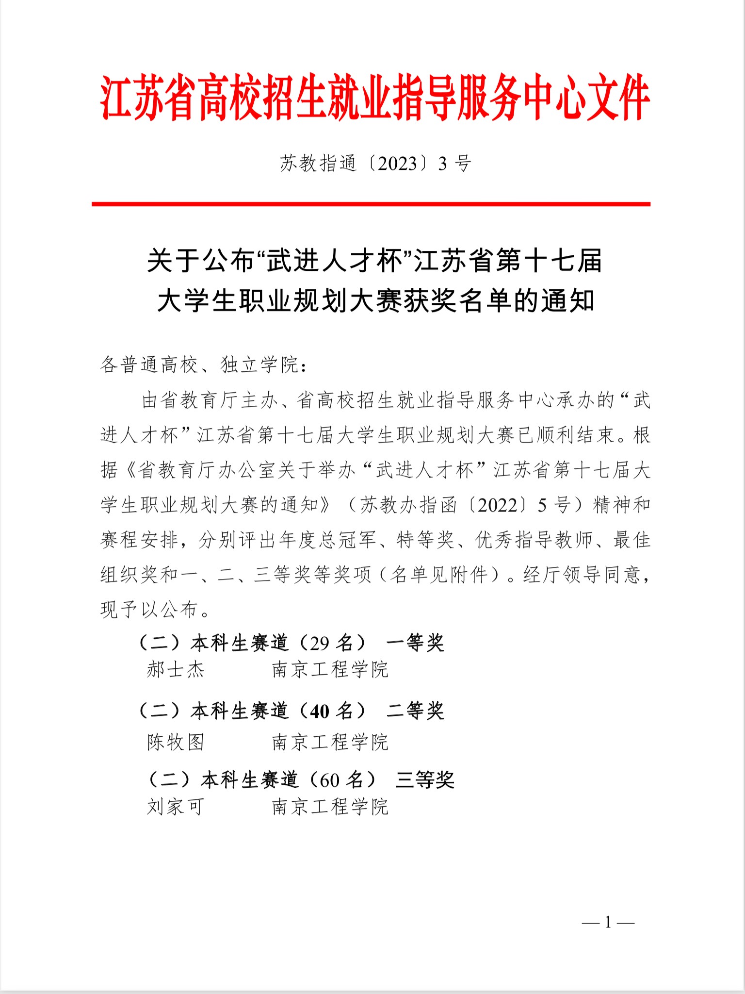 近日,“武进人才杯”江苏省第十七届大学生职业规划大赛总决赛获奖结果公布,太阳集团推荐参加省赛的三名选手全部榜上有名,材料科学与工程学院郝士杰,信息与通信工程学院陈牧图、计算机工程学院刘家可三位同学分别荣获本科生赛道一、二、三等奖。
