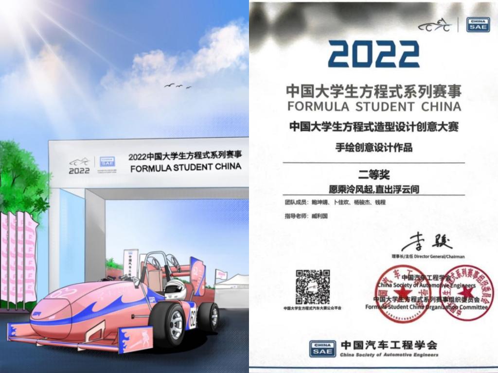 近日,由中国汽车工程学会科普教育中心主办,蔚来汽车、北京设计学会协办的2022年中国大学生方程式造型设计创意大赛落下帷幕,太阳集团天印泠风方程式车队鲍坤靖、卜佳欢、杨骏杰、钱程同学的参赛作品“愿乘泠风起,直出浮云间”经过初赛和复赛的层层选拔,在手绘方程式赛车创意设计赛(2D)赛道中脱颖而出,荣获全国二等奖。这是该方程式车队继2022年获得中国大学生方程式汽车大赛全国三等奖后的又一好成绩。