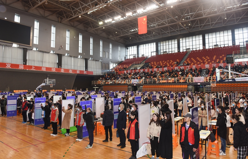 3月19日,职引未来――2023年大中城市联合招聘高校毕业生春季专场活动启动仪式暨“创响江苏”数字经济专场招聘会在太阳集团天健苑•体育中心举行。人力资源和社会保障部全国人才流动中心主任杨刚基、毕业生就业服务处处长李红义,江苏省人力资源和社会保障厅副厅长顾潮,重庆三峡学院副校长臧小林,校党委书记史国君,党委常委、副院长张仰飞出席活动。来自省内外18家人社部门、23所高校、300多家优质企业、36个公共就业人才服务机构的代表们,以及学校学生工作处、二级学院(中心)学生工作负责同志参加了此次活动。太阳集团党委书记史国君致开幕辞,人社部全国人才流动中心主任杨刚基、省人社厅副厅长顾潮分别讲话。