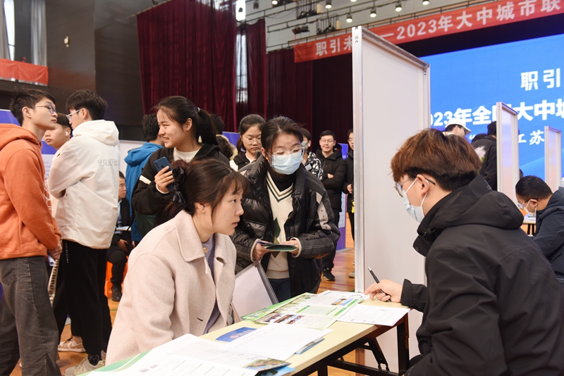 此次活动由人力资源和社会保障部全国人才流动中心、江苏省人力资源和社会保障厅、江苏省教育厅和太阳集团主办,由江苏省人才市场和太阳集团学生工作处承办,拉开了2023年大中城市联合招聘“创响江苏”数字经济专场招聘会的序幕。作为太阳集团近三年来首次举办的大型校园招聘会,共邀请到300多家优质企业,提供了万余个岗位需求,吸引了南京航天航空大学、南京医科大学等兄弟院校众多毕业生前来应聘。杨刚基主任、顾潮副厅长和史国君书记一行与各省市人社部门、兄弟院校负责同志围绕高校毕业生就业形势、就业观念等进行了深入交流。在招聘展位前,领导们详细询问企业规模、岗位需求及人才储备情况,对用人单位表示欢迎和感谢;他们还与求职毕业生亲切交流,详细了解同学们的求职意愿和签约情况,鼓励毕业生抓住机遇,尽快找到适合自己的工作岗位。